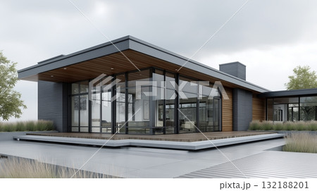 Modern kitchen interior with clean lines and organized shelves in daylight
