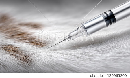 Close-up of a syringe preparing for an injection on a soft animal fur