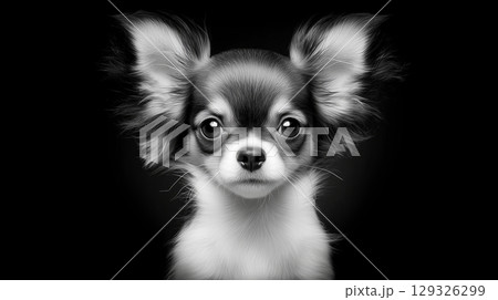 Cute black and white portrait of a Chihuahua with expressive eyes