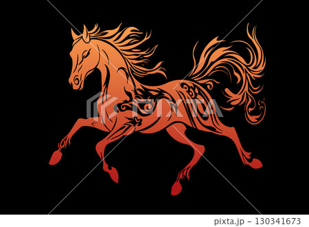 Red Horse in the style of Chinese paper cut art on black background. Graceful fire horse symbol of 2026.