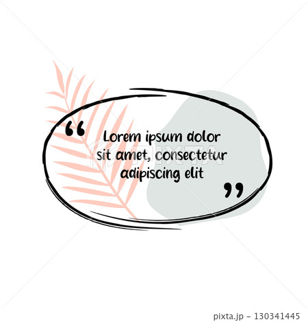 Hand-drawn quote with leaves shape on background. Simple pastel color frame. Elegant speech bubble for text.