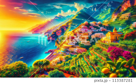 ヨーロッパ降り注ぐ太陽と青い海の風景バカンス
