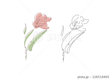 一輪のバラ、カーネーション、花の線画