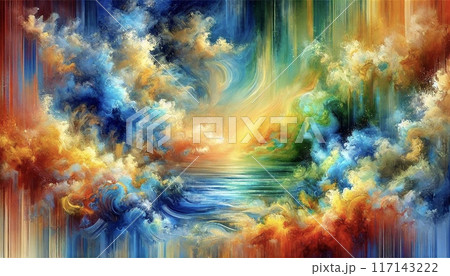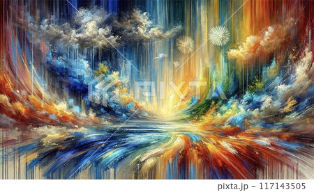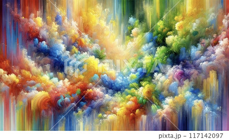 2025色彩のカレンダー 4月の溢れる自然の生命力をカラフルで幻想的なテクスチャ風に表しました