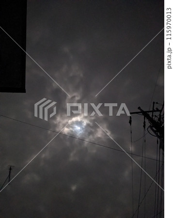 夜空の雲に隠れた月
