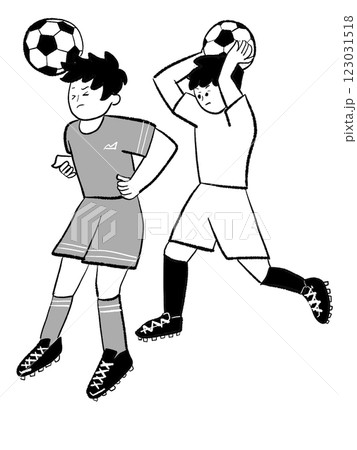 ヘディングとスローインサッカーをする少年