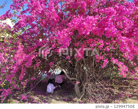 Huge pink bougainvillea vine flowers