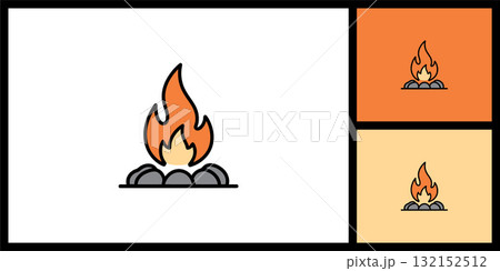 Campfire Icon with Stones for Outdoor Camping and Adventure