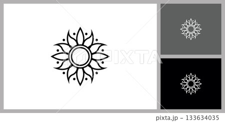 Decorative Floral Sun Ornament Icon for Wellness and Spa