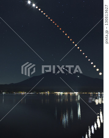 皆既月食と富士山
