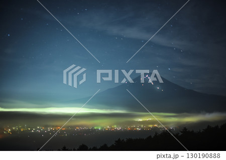 盆地の夜景と富士山