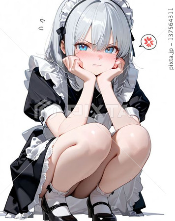 銀髪のかわいいメイドの女の子が怒っているイラスト