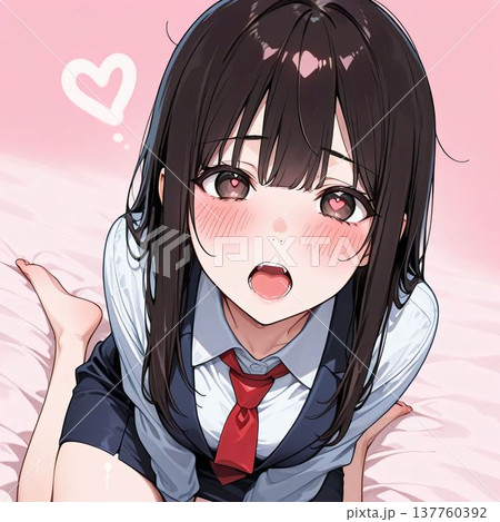 かわいい制服姿の女の子が座っているイラスト
