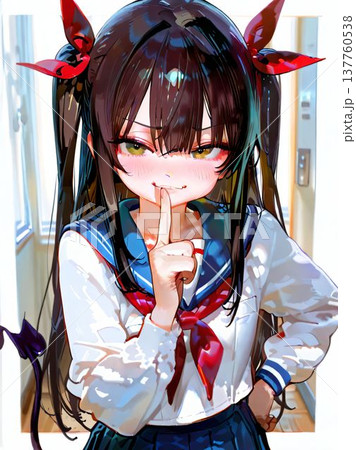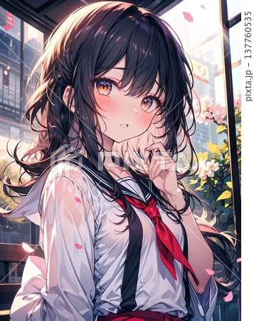 セーラー服のかわいい女の子が座っているイラスト