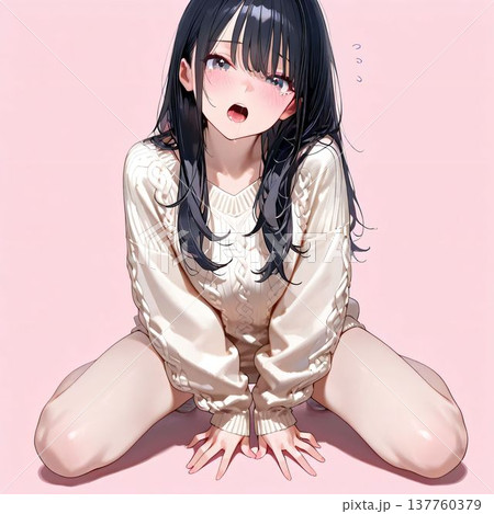 かわいい女の子が座っているイラスト