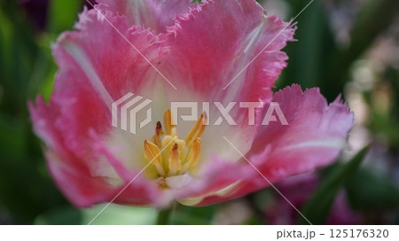 白とピンクのグラデーションをもつフリンジ花弁のチューリップ