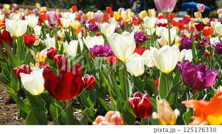色とりどりのチューリップの花壇