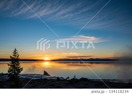 sunset on the lake,Yellowstone, National Park