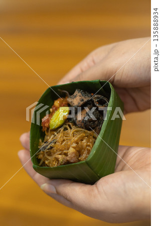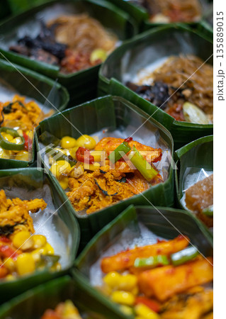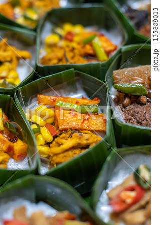 Indonesian Rice Meals Wrapped in Banana Leaf