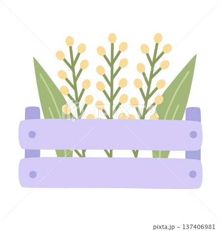 Spring Easter composition with flowers in a purple box. Vector illustration