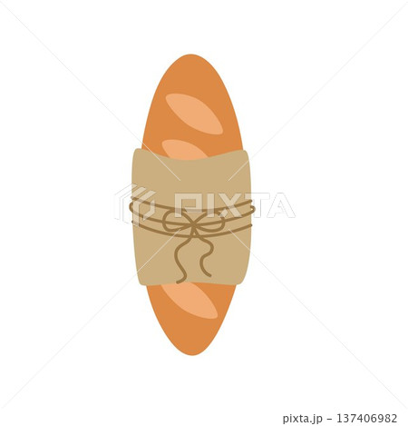 Freshly baked loaf in a kraft paper wrapper. Vector illustration.