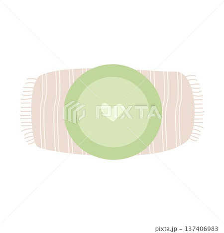 Green plate with a heart on a cloth napkin. Vector illustration.