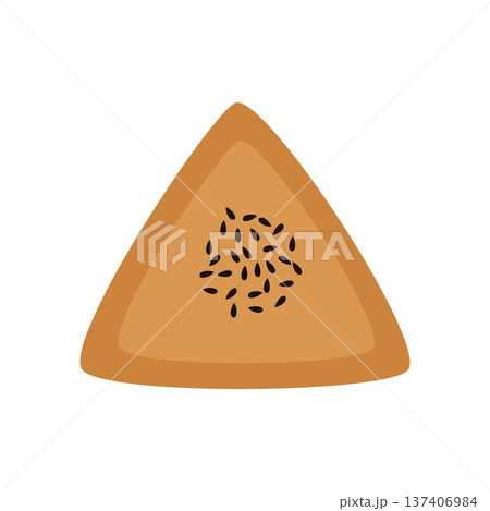 Freshly baked samsa with meat, sprinkled with black sesame seeds. Vector illustration.