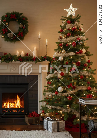 豪華なクリスマスツリーとプレゼント