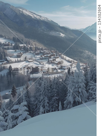 暖炉のある家のクリスマスのイメージ