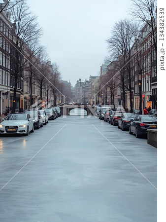雪の降った朝の道路