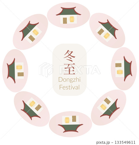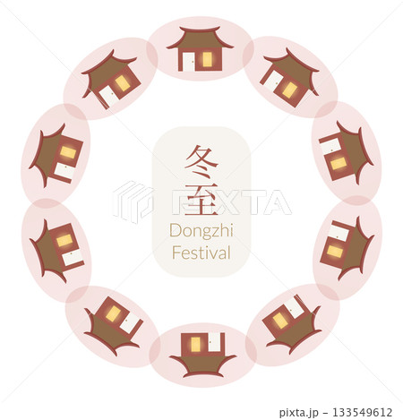 Round Dongzhi festival frame with house. Asian vector illustration for social media and banners