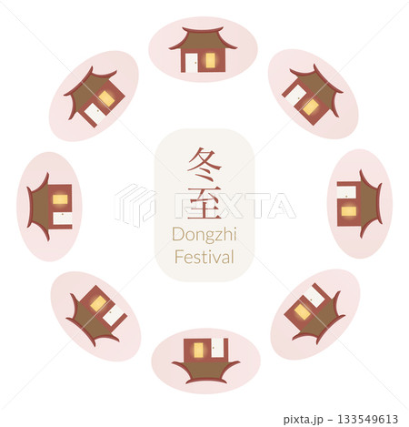 Traditional Dongzhi celebration frame. House chinese icons. Text Dongshi festival