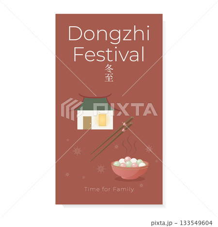 Seasonal winter holiday collection. Dongzhi festival illustrations in warm color palette. Vector art for banner design, social media post, greeting card