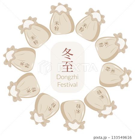 Dongzhi festival circular frame with flour sack. Chinese vector illustration for social media and banners