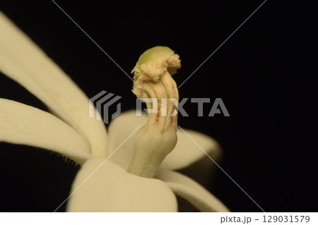 Hippobroma longiflora, also called Star of Bethlehem or madamfate on dark background.