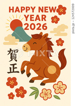 和風午年年賀状手書き、年賀はがきテンプレート-5