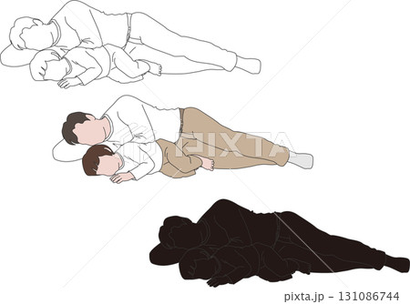パパと子供が寄り添って昼寝するイラスト