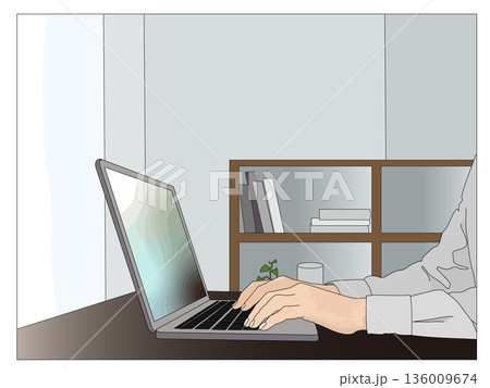 ノートパソコンを操作する手 元・ビジネス・テレワーク・余白あり