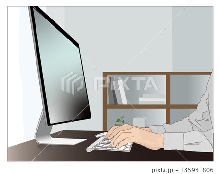 パソコンを操作する手 元・ビジネス・テレワーク・余白あり