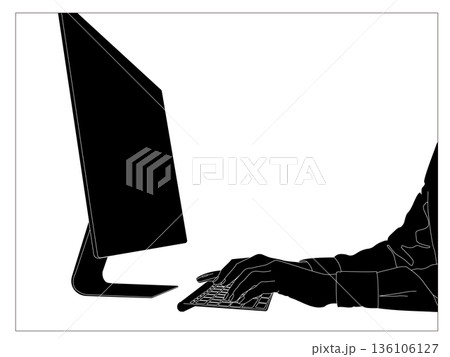 パソコンを操作する手のシルエット素材セット(パソコン, 手, タイピング, シルエット,デスクPC)