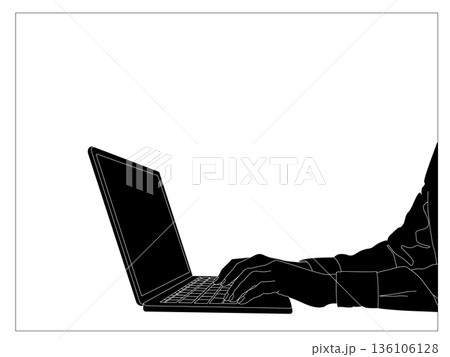 パソコンを操作する手のシルエット素材セット(パソコン, 手, タイピング, シルエット,ノートPC)