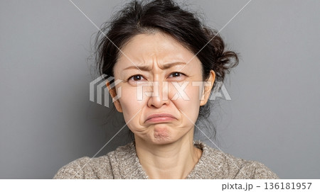 悲しみに暮れ涙を堪える表情の日本人女性の肖像