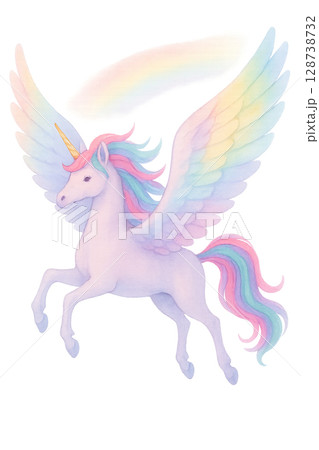 虹色の羽を広げたユニコーン