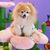 我が家の可愛いポメラニアンと家族写真を撮っています。