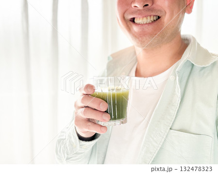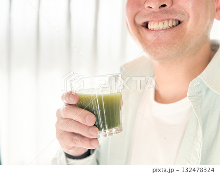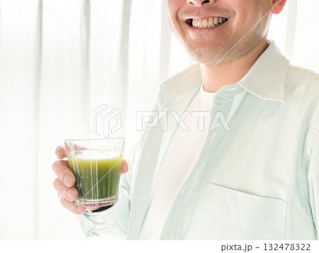 シェービングフォームで髭剃りするミドル男性 コピースペース