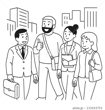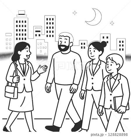 仕事帰りに会話を楽しむビジネスパーソンたち