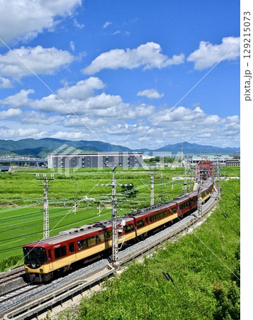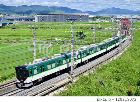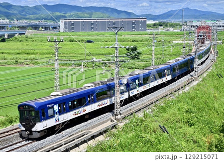 田園風景を走る京阪3000系特急、きかんしゃトーマス編成