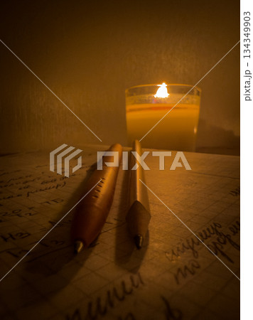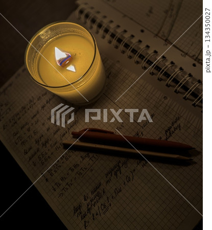 A poignant close-up image illustrating how people live and work during a blackout and power outage