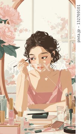 メイクをする女性 明るい雰囲気 美容ライフスタイル