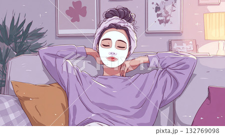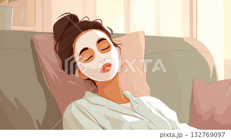 フェイスマスクでリラックスする女性 セルフケアイメージ